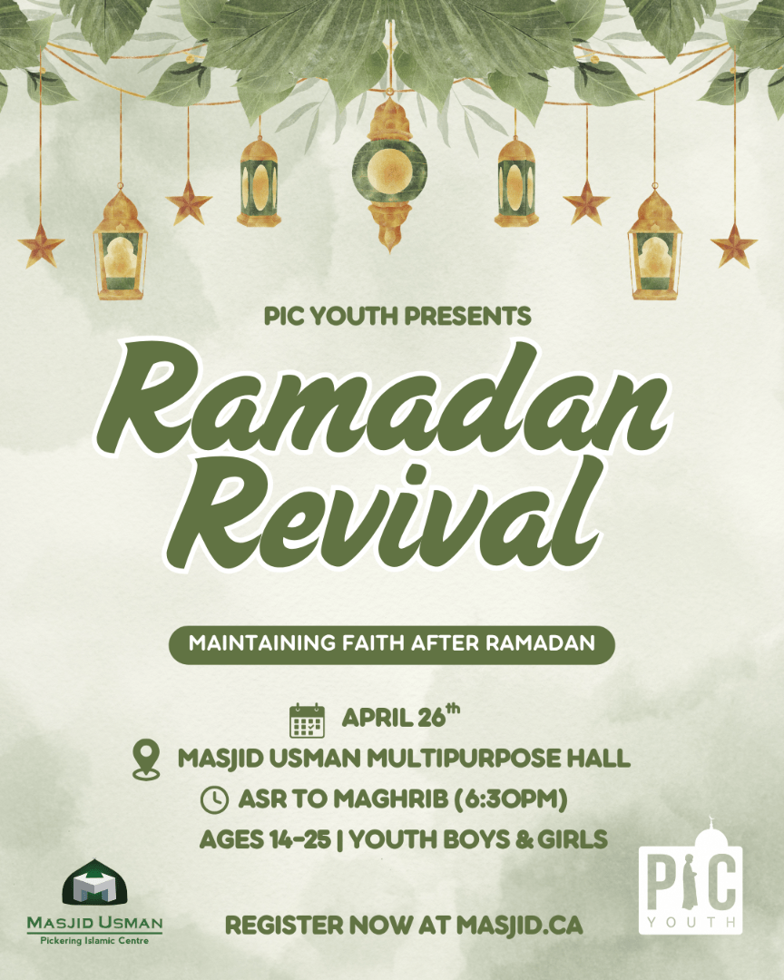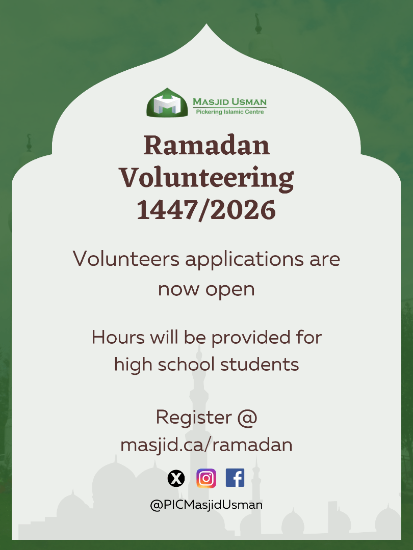 The PIC proudly serves the Pickering community, providing excellent service in adherence to the Quran and Sunnah. We aim to instil an Islamic education in our children and adults in need, as well as provide our youth with academic learning in accordance to provincial standards. Together with the community and other Islamic Organizations, we shall spread Islamic knowledge and display to our nation at large the beautiful face of our religion. Ameen.