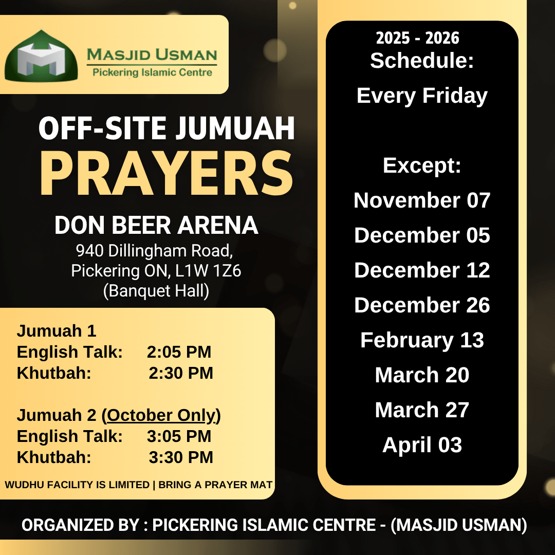 Off-Site Jumuah (Don Beer Arena Banquet Hall) |