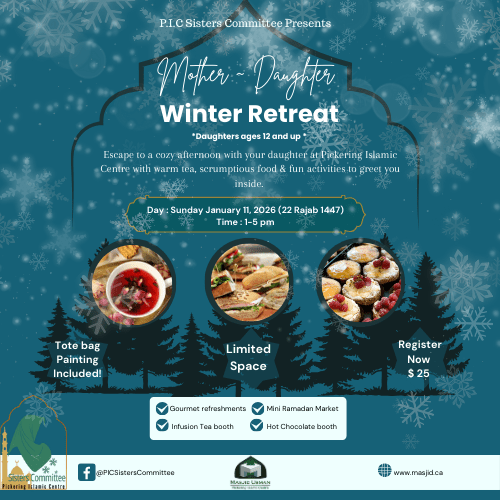 The PIC proudly serves the Pickering community, providing excellent service in adherence to the Quran and Sunnah. We aim to instil an Islamic education in our children and adults in need, as well as provide our youth with academic learning in accordance to provincial standards. Together with the community and other Islamic Organizations, we shall spread Islamic knowledge and display to our nation at large the beautiful face of our religion. Ameen.