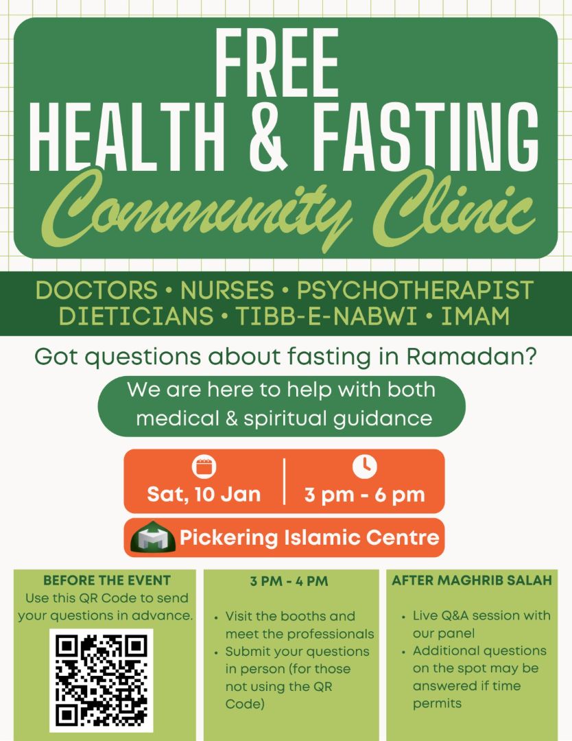 Join us for a special community event led by doctors, nurses, dietitians, and an imam — all coming together to answer your questions about holistic fasting, health, wellness, and spiritual preparation.